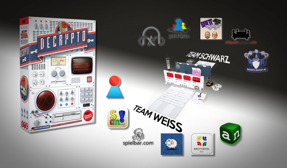 Decrypto ist ein Kommunikationsspiel in dem zwei Teams gegeneinander antreten und versuchen untereinander Codes zu entschlüsseln, die auf die eigenen Schlüsselbegriffe hinweisen. Aber Vorsicht – das gegnerische Team hört mit und wenn man nicht gut genug verschlüsselt, kommt das andere Team vielleicht auch auf den Code.