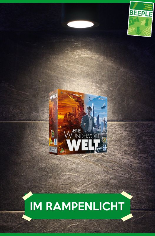 EINE WUNDERVOLLE WELT spielt in der Zukunft in der die Welt … nun ja … wundervoll sein wird. Wobei das durchaus ein wenig im Auge des Betrachtenden liegt. Wir sind uns nämlich nicht so sicher, ob wir wirklich in einer solchen Welt leben wollen. Aber wir sind uns sicher, dass wir gerne dieses Spiel auf den Tisch bringen wollen. Das vereint nämlich wundervoll bekannte Mechanismen zu einem stimmigen Gesamtwerk. Erst müssen wir Karten auswählen, dann Produktionen starten, um die ausgewählten Karten überhaupt erst aktivieren zu können. Das klingt aber komplizierter, als es letztendlich ist. Vor dem Spiel muss man demnach keine Angst haben – vor der dort gezeigten Zukunft schon eher…