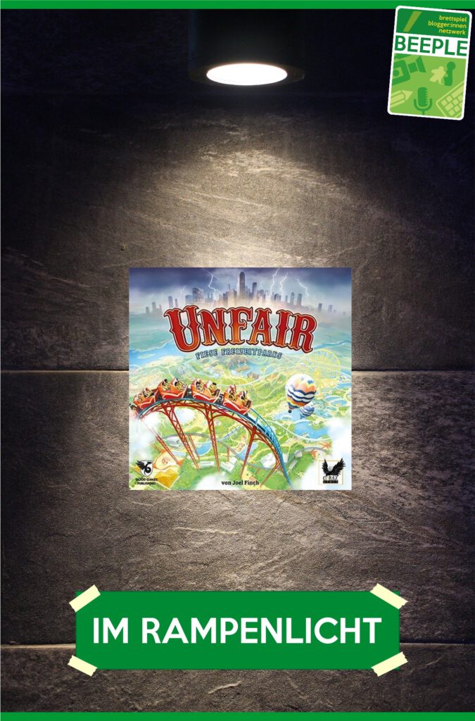 Spielerisch einen Freizeitpark aufbauen, Mitarbeitende zur Unterhaltung der Gäste einstellen, Attraktionen errichten, Verbesserungen am Park durchführen… das alles klingt doch schon nach einem Kindheitstraum für viele. Dieser wird mit Unfair zur Realität, auch wenn diese nur aus Karten besteht. Doch diese Idylle kann massiv durch die Mitspielenden gestört werden, denn Unfair von Joel Finch, welches auf Deutsch bei Giant Roc erschienen ist, bietet allen Spielenden ordentlich Möglichkeiten der Konkurrenz in die Suppe zu spucken und die anderen Parks zu sabotieren. Das muss man sicherlich mögen und liegt nicht allen. Was einige Mitglieder aus dem Beeple Netzwerk von diesem Spiel halten, lest ihr im aktuellen Rampenlicht.